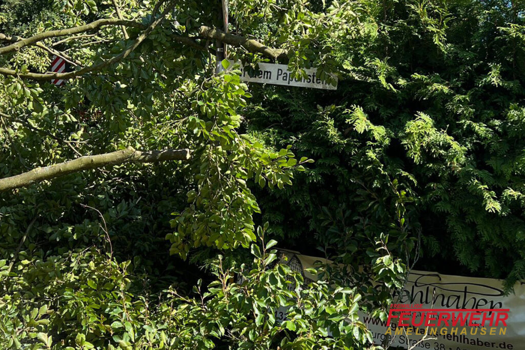 Vor Ort fanden wir einen ca. 20 Meter hohen Baum vor, welcher umgefallen war und zum Teil auf der B209 lag.